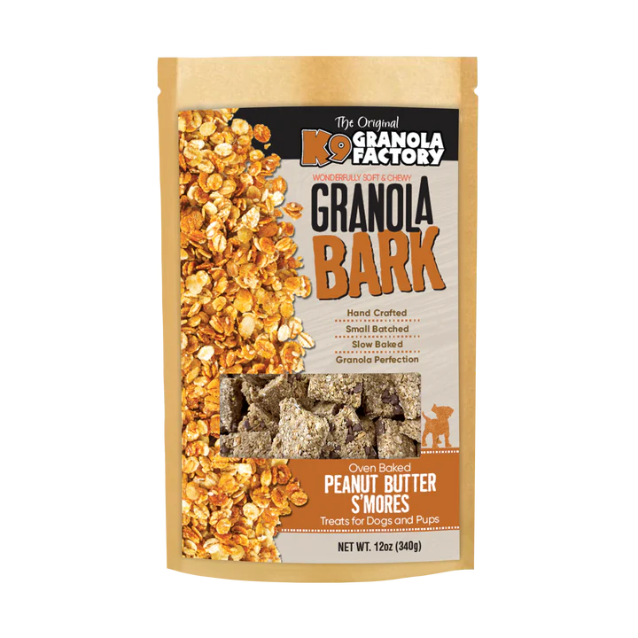 Our K9 Granola Factory Granola BARK takes us back to the beginning. Every recipe is handmade in small batches, baked slowly to a golden perfection and hand packed with love. Our blends consist of rolled oats, honey, peanut butter, carob chips and dehydrated marshmallows. The recipe that started it all. This treat is simply delicious.