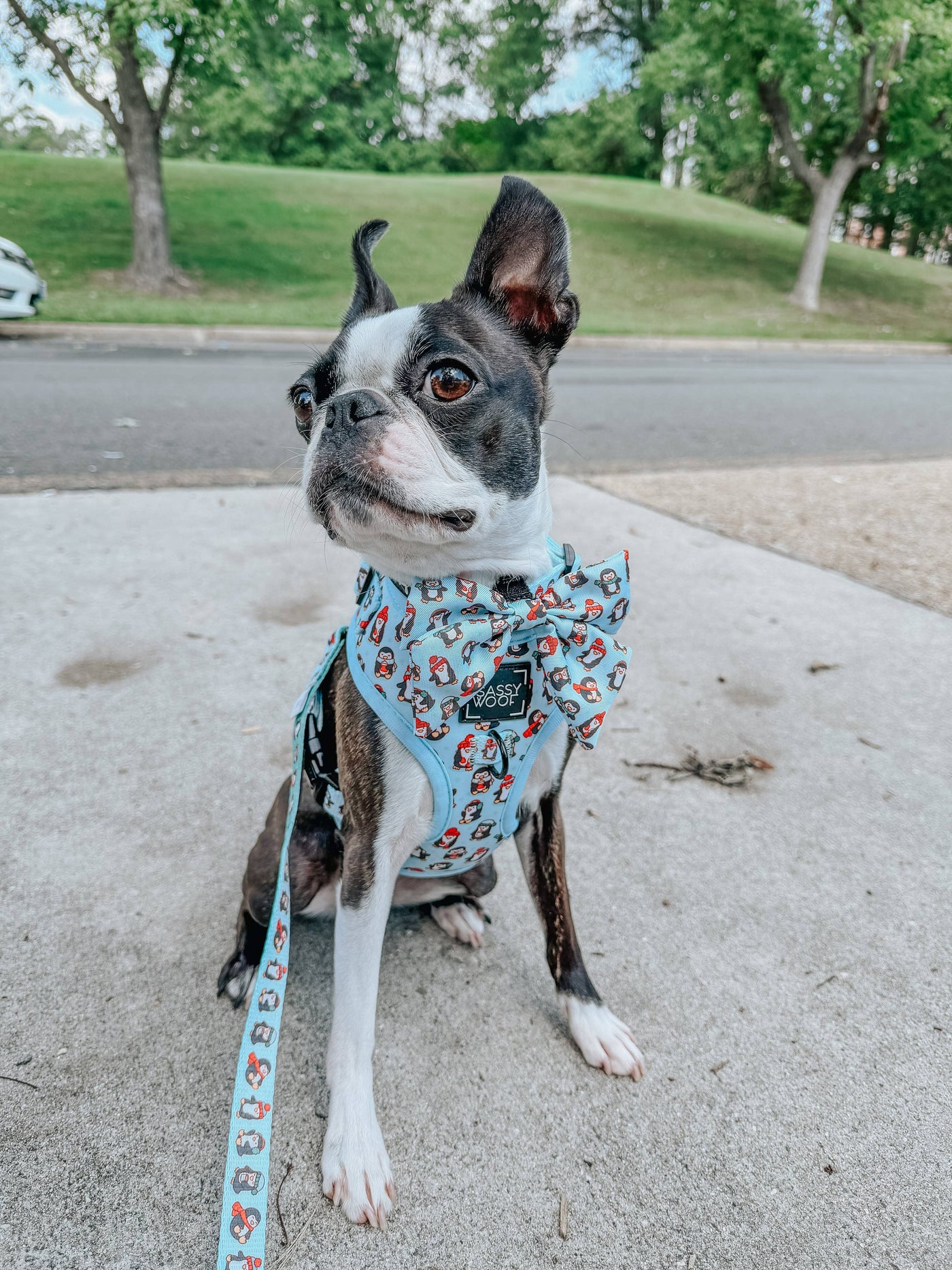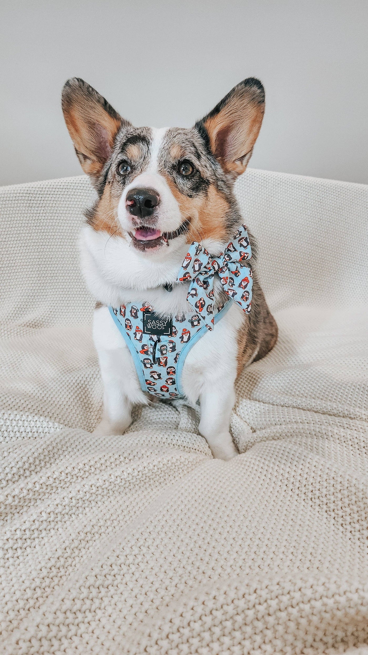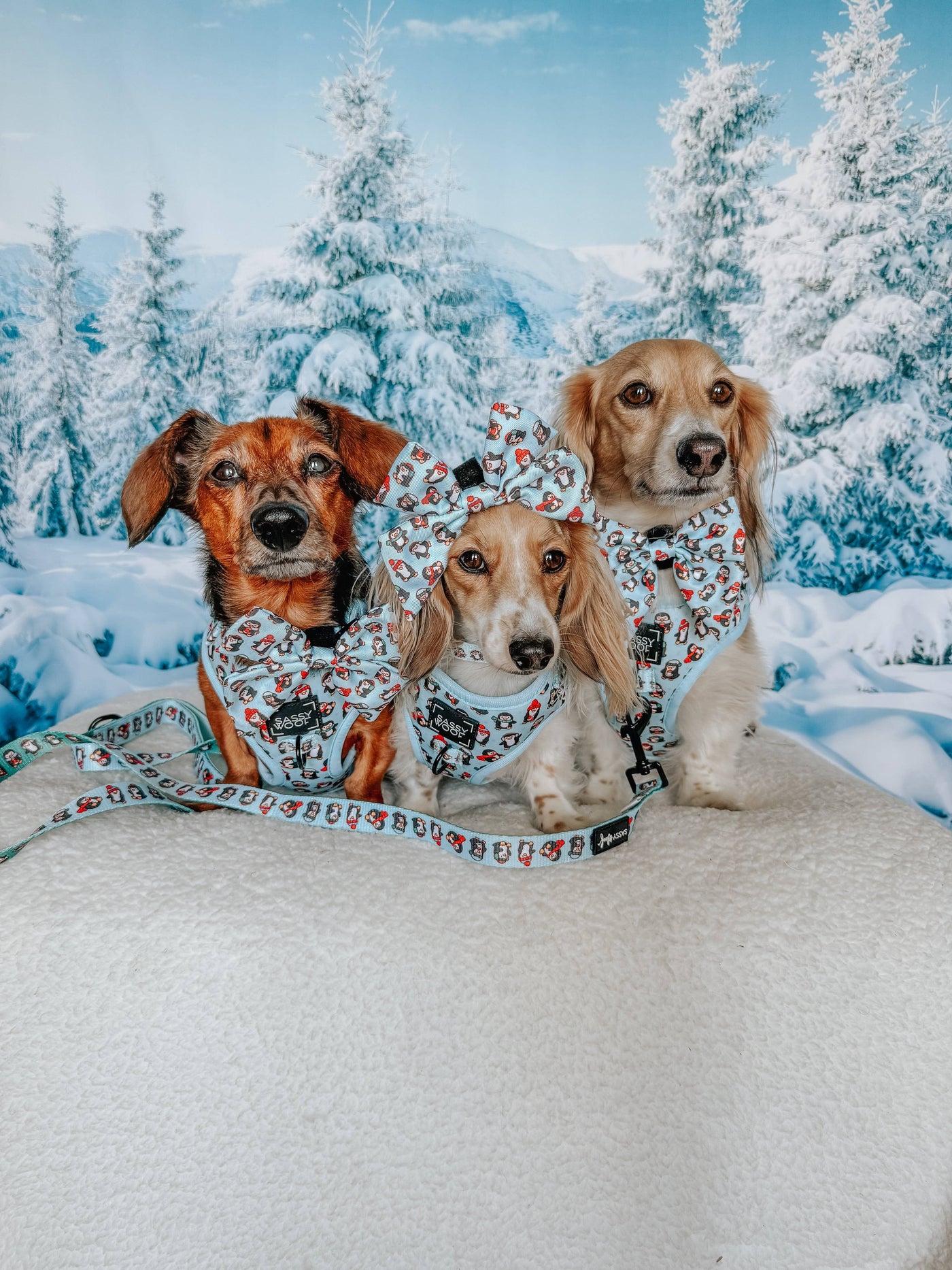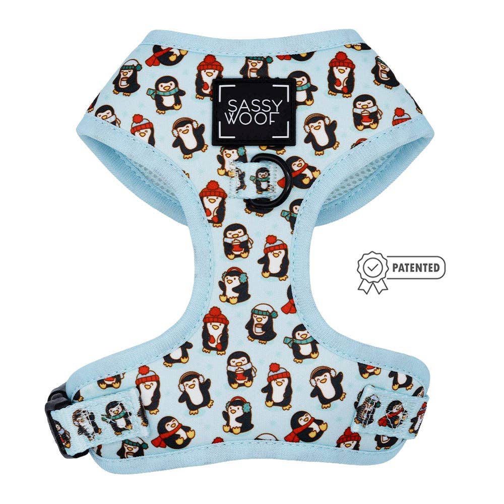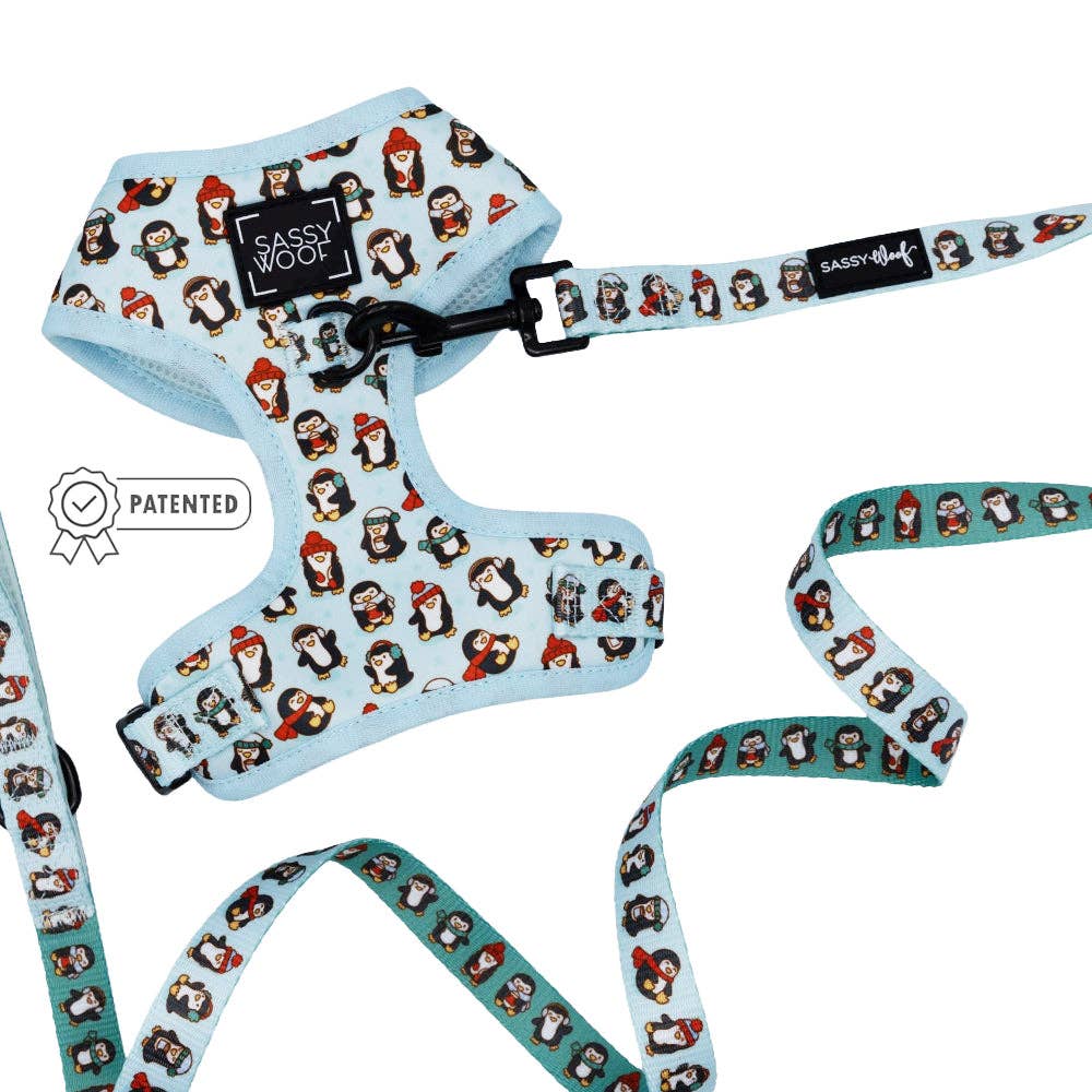 Have you been considering Sassy Woof but don't know where to start? Well waddle you waiting for! Winter Waddleland is here and it is a super cute, stylish pattern featuring cuddly penguins wrapped in winter gear! Grab your hot cocoa and come shop! Description * Bundle includes our signature Winter Waddle Land collection: * 1 Adjustable Harness * 1 Leash Puppy Growth Pawtection Plan (U.S. ONLY): This harness qualifies for our Puppy Growth Pawtection Plan (PGPP), which will let you replace this harness for a larger one within 9 months because of natural growth! The PGPP must be added at the time of purchase. Find pricing information and other details here. Sizing & Care Instructions * Spot clean with soap and water. Hang to dry. How-To Videos