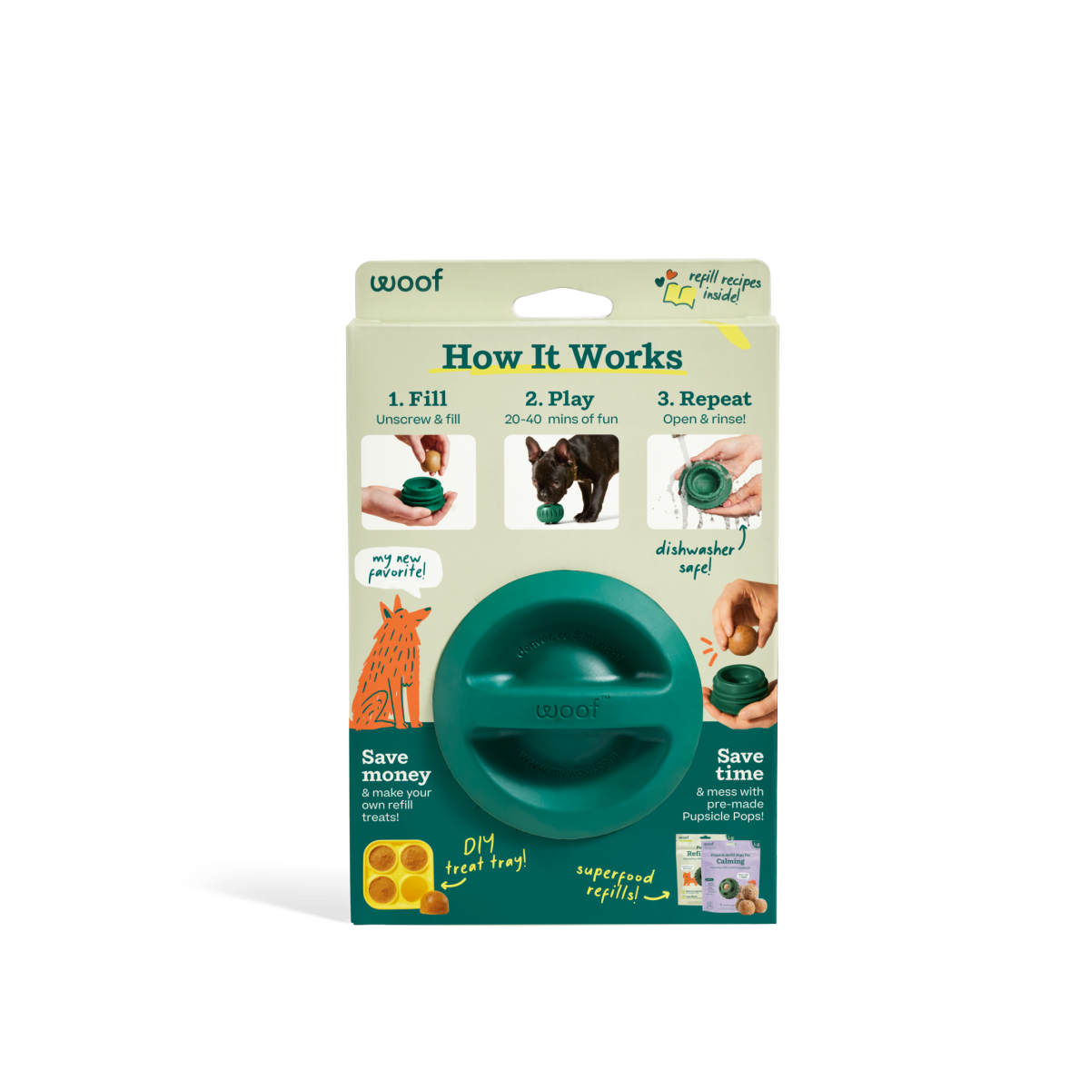 The Pupsicle is a new breed of dog toy: the cleanest, safest & longest lasting enrichment toy on the market. It unscrews to open so it’s a breeze to fill & clean - plus customers can make their own refills with healthy ingredients that dogs love! Simply fill the Pupsicle with our pre-made Pops or use our companion Treat Tray to create the frozen treat of your choice. Peanut butter, canned wet food, yogurt, fruit, and bone broth are just a few of the freezable fillings you can use. The Pupsicle comes in 3 sizes; Small (for dogs 5 - 25lbs), Large (for dogs 25 - 70lbs), and Extra Large (for dogs 75lbs and up). The Pupsicle is made from a non-toxic, BPA and Phthalate free natural rubber.